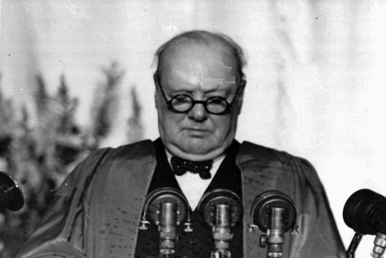 Winston Churchill, former Prime Minister of England, speaks at Westminster College in Fulton, Mo. ©  PA Images via Getty Images