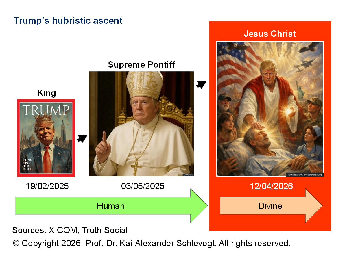 The US president first presented himself as king, then as pope – the pontifex maximus, the “greatest bridge-builder” who mediates between the human and the divine realms – and, at its apogee, as a Christ-like figure (see Figure 1).